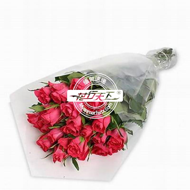 缅甸鲜花-粉玫瑰15枝